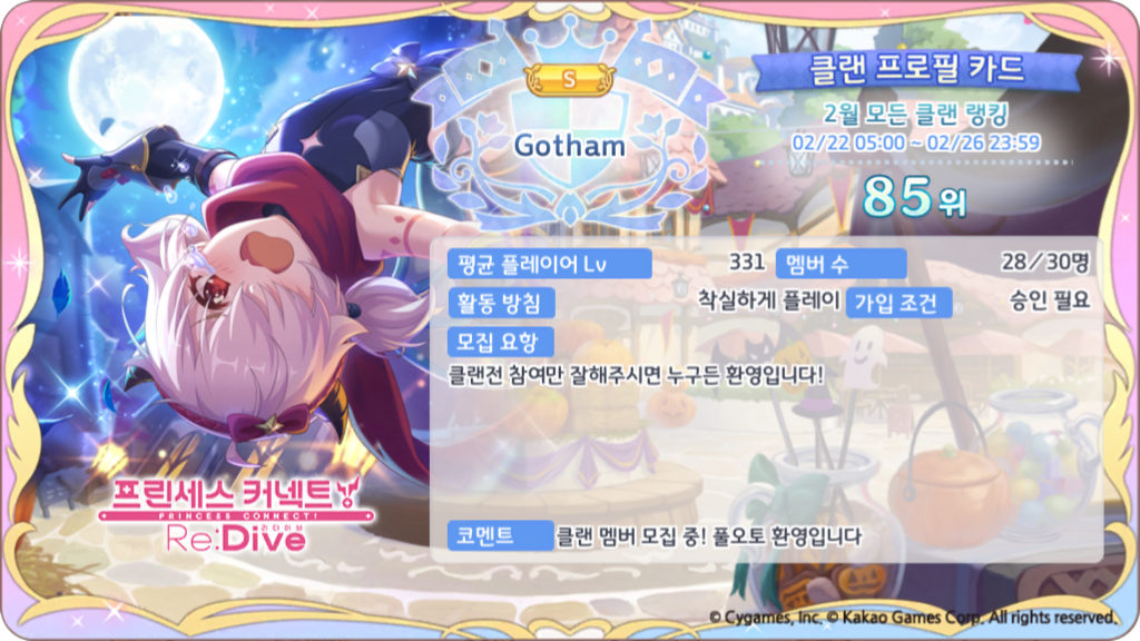 클랜 Gotham에서 같이 프리코네를 즐기실 클랜원분들을 모집합니다!