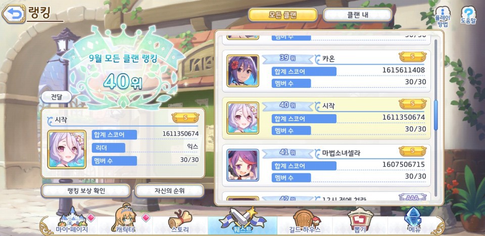 저희 클랜전은 4월 in1000위로 시작해서 5월 450등 6월210등 7월 97등 8월 40위 9월 40위 목표는 in50 유지하면서 상위 지향형 클랜으로 함께 꾸준히 성장하실분을 모집하고 있습니다 클랜전 관리 같은 경우는 구글 시트를 사용하여 보스에 따라 차별 받지 않게 기여도로 딜량을 측정하고 있어서 어느보스를 치든 공평하게 측정 하고 있습니다. (작성은 저랑 부마가 합니다. 클랜전만 집중해서 열심히 해주시면 됩니다.) 클랜전 열심히 즐기시는분이면 오시면 즐겁게 하실 것 같습니다. 가입 조건을 해당 되시는분만 구하고 있습니다. 1. 소통이 원할 하신분 2. 클랜전 3회 참여 및 3회 서포터 사용 3. 쥰,마코토 마딜팟, 다음 클전 아야네3성 육성이 가능하신분 4. 9월 클랜전 보스 딜량표 or 스코어 및 보스 딜량 확인이 가능한분 5. 최소한 1인분을 목표로 열심히 하시는분 구합니다 6. 본인 시간에 맞게 보스 별 배분해서 공격이 가능하신분 (사유가 있을때는 빼고는 잦은 3대 몰아 치시는분은 받지 않고 있습니다.) 24:00 기준으로 1일 미접은 경고 입니다 (사유없이) 클전전때만 오픈톡 필참!! -비시즌 경우는 나가셔도 됩니다 개인 오픈톡 주소 : https://open.kakao.com/o/s270cSAb 오픈톡 주시면 빠르게 답변 드립니다 프로필/덱(전투력순으로)/딜량표 등 스샷을 준비하시면 서로 더 편할 것 같습니다 |