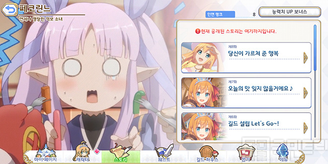 페코린느(여름)를 비롯한 수영복 캐릭터를 수집했다면, 원본 캐릭터의 인연 스토리를 진행하세요. 특별한 버전 캐릭터는 인연 스토리가 4편까지만 존재하는 대신, 원본의 인연 스탯 보너스를 공유합니다. 참고로 페코린느 3성 달성을 위한 메모리 피스는 하드 퀘스트에서 획득할 수 있답니다.