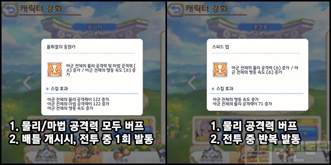 ▲ 콧코로와 모니카의 버프기 성능을 간단히 비교해보죠
