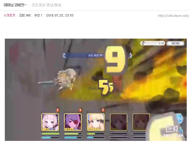 영상/방송 게시판에서는 ‘시계토끼’의 아레나 영상이 눈길을 끕니다. 패스트 니논 조합으로 이리야에게 도전했는데요. 사렌의 맹활약으로 전투에서 승리했습니다. 니논과 노조미가 이리야에게 쓰러지자, 사렌이 2회 연속 유니온 버스트를 발동해 적을 전멸시켰죠. 유저들은 ‘대체 무슨 일이 벌어진거냐’는 반응인데요. 적을 처치하며 획득한 TP에 유키의 지원이 더해진 결과로 보입니다.