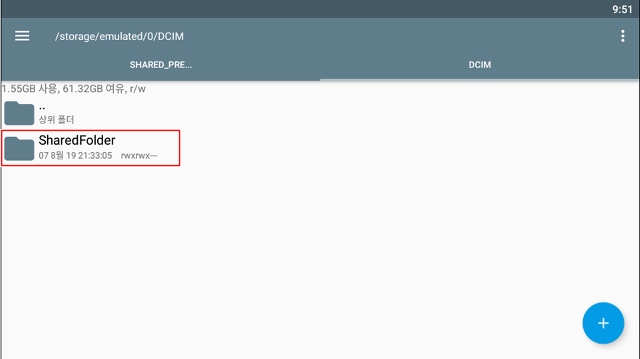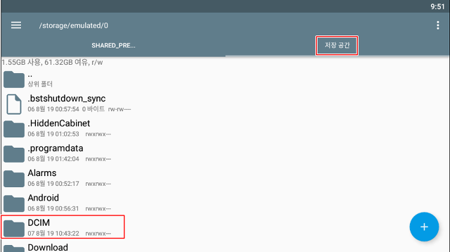그러면 아래와 같은 폴더들이 나타납니다. 이중 DCIM 클릭 후 SharedFolder 클릭