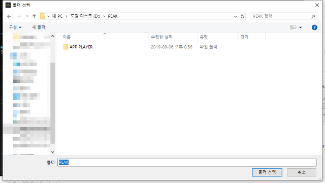 (저는 그냥 문서폴더내에 피크 플레이어라는 폴더를 만들어 그곳에 저장했습니다.)