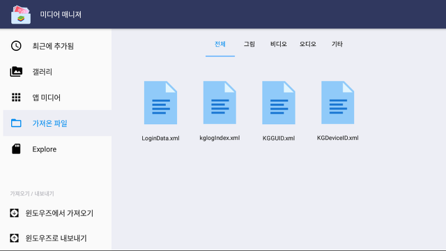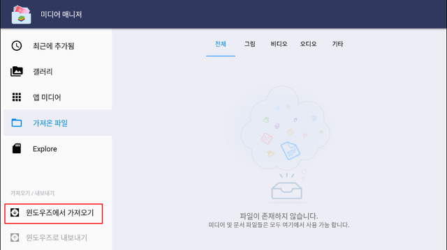 미디어 매니저에서 '윈도우즈에서 가져오기'를 눌러줍니다.