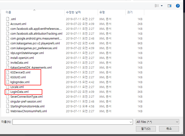 해당 폴더는 루트폴더 내 /data/data/com.kakaogames.pcr 내에 위치합니다