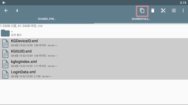 이 파일들을 전부 선택해준 후 오른쪽 상단의 복사 아이콘을 눌러줍니다.