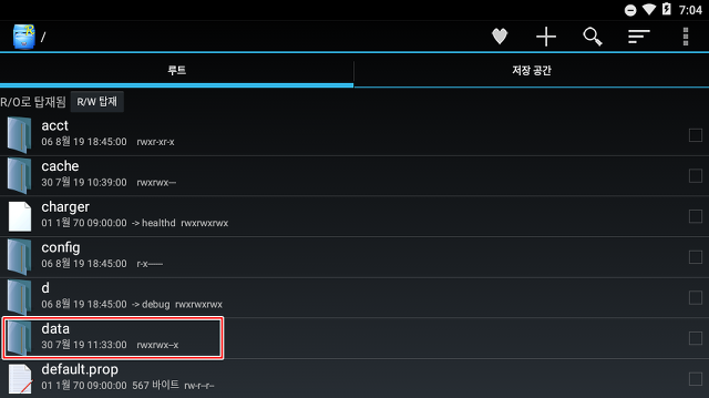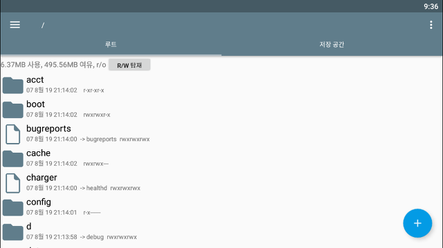아래 화면과 같이 루트 탭과 저장공간 탭을 확인가능합니다.