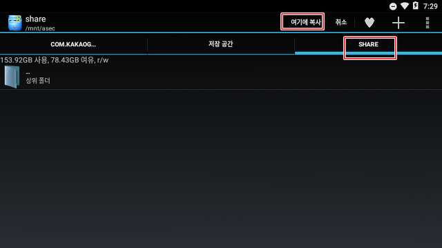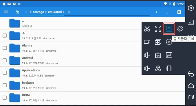 이제 공유폴더를 설정하고 그곳에 복사해 넣습니다. 우선 오른쪽 명령아이콘 중에 공유 폴더 아이콘을 클릭해줍니다.