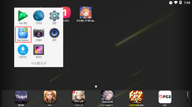 앱플레이어에서 제공되는 Root Explorer를 클릭해 줍니다.