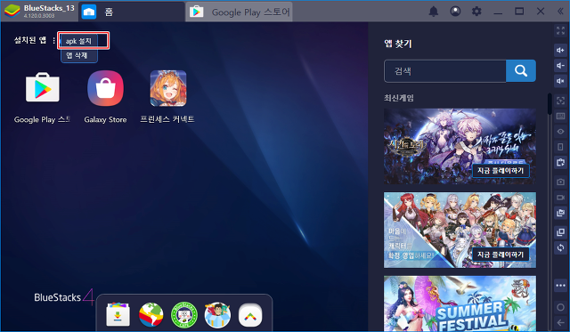 아래의 화면위치에서 apk 설치를 클릭해줍니다.