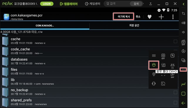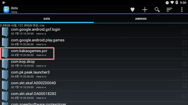 경로는 LD플레이어와 마찬가지로 /data/data/com.kakaogames.pcr 폴더 입니다.