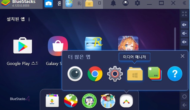 블루스택 내에 미디어 매니저 라는 앱이 있습니다.