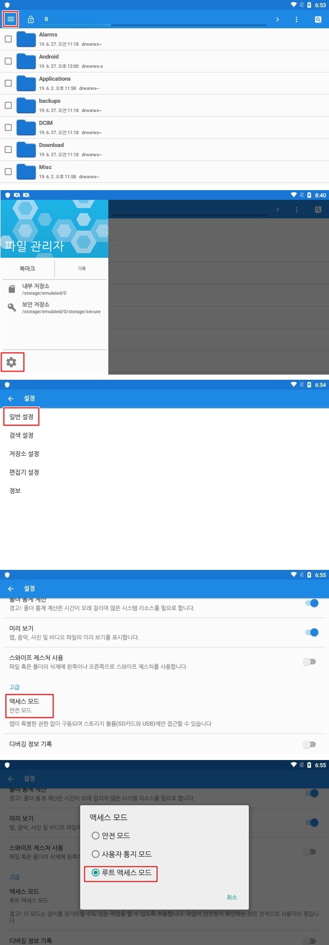 그리고 아래 순서를 따라 루트 액세스 모드로 전환해 줍니다.