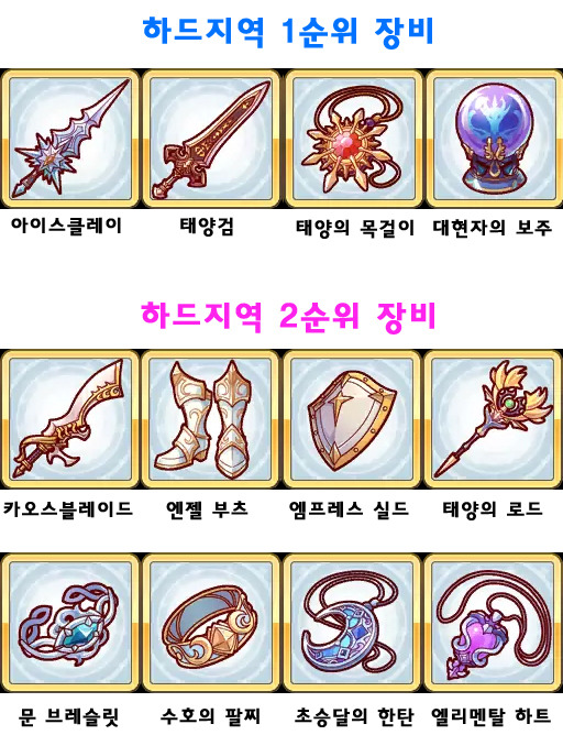 1순위 : 대현자의 보주, 태양의 목걸이, 태양검, 아이스 클레이모어