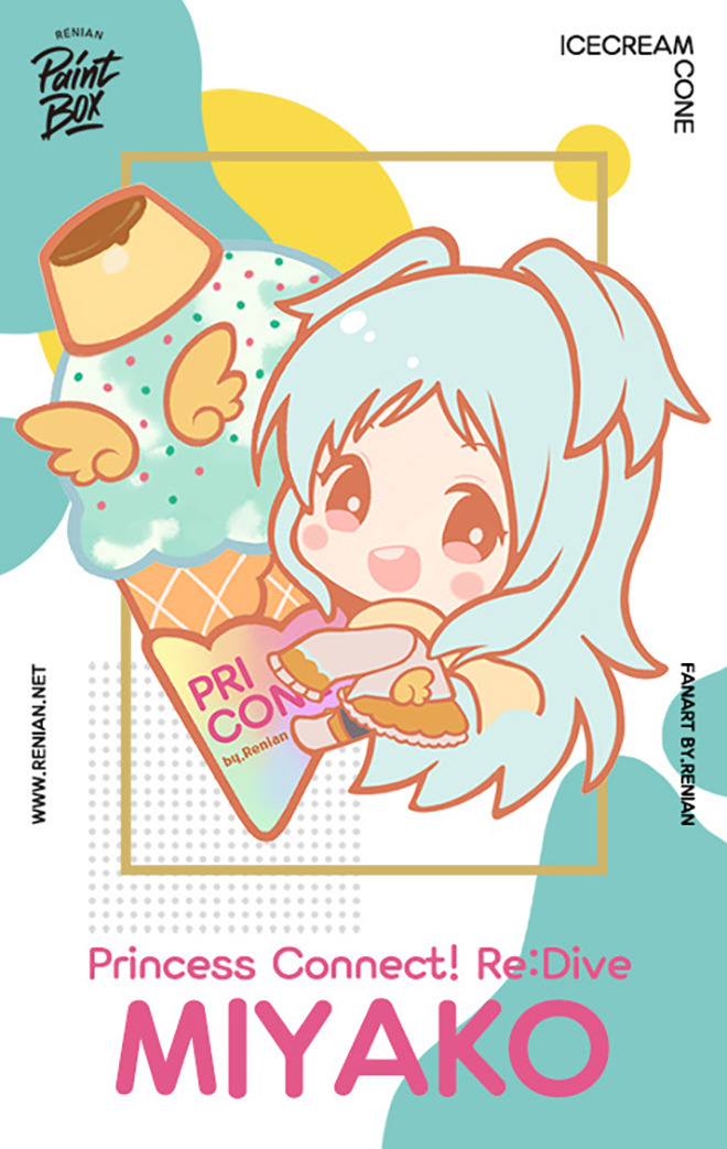 미야코(할로윈)의 인기를 증명하듯, 공식 카페에는 미야코를 대상으로 한 팬아트가 다수 업로드되고 있습니다. 그 중 ‘레니안’은 ‘푸딩미야코’라는 제목의 게시 글을 업로드 했는데요. 미야코가 아이스크림 위에 좋아하는 푸딩을 얹어 들고 있습니다. 미야코의 아이스크림은 미야코를 대표하는 색에서 착안한 것으로 보이네요.