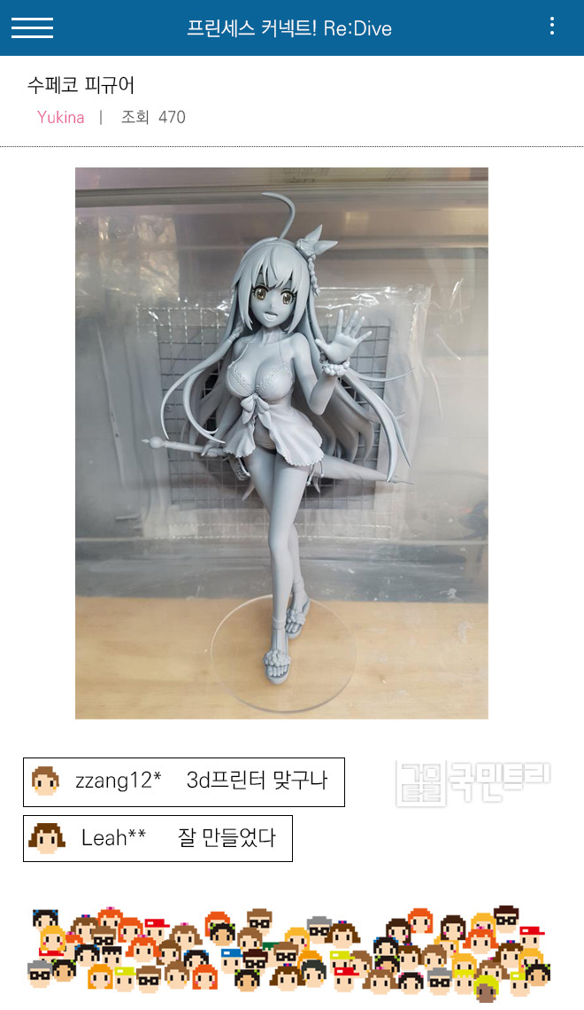 공식 카페에 ‘페코린느(여름)’의 피규어를 만드는 모습이 업로드되었습니다. 직접 모델링한 페코린느를 3D프린터로 출력한 건데요. 눈은 붓으로 그렸다고 합니다. 여기에 데칼을 이용하는 게 좋을 것 같다는 자체적인 보완점도 덧붙였죠.