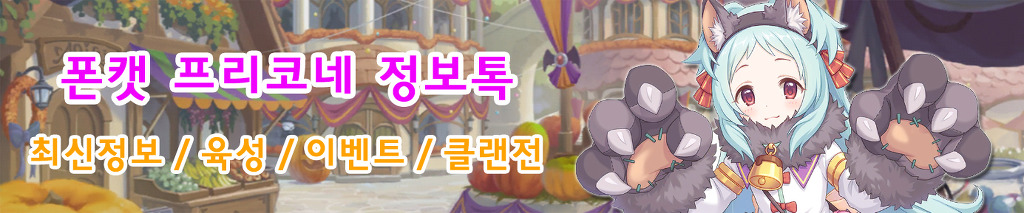 폰캣 프리코네 정보톡에 들어오시면 제가 매일 최신 공략을 업데이트해드리고 질문이나 육성 상담도 실시간으로 도와드리고 있어서 카톡방에 들어오시면 좋습니다^^