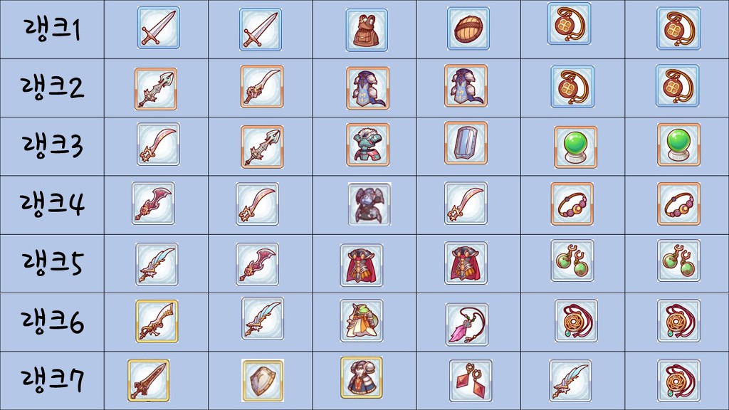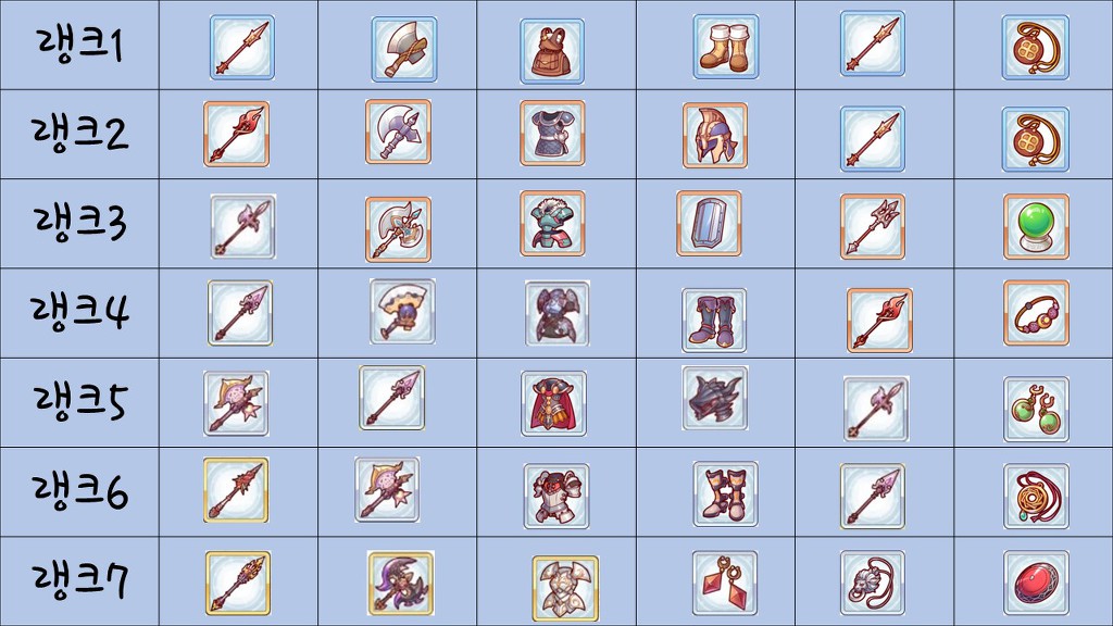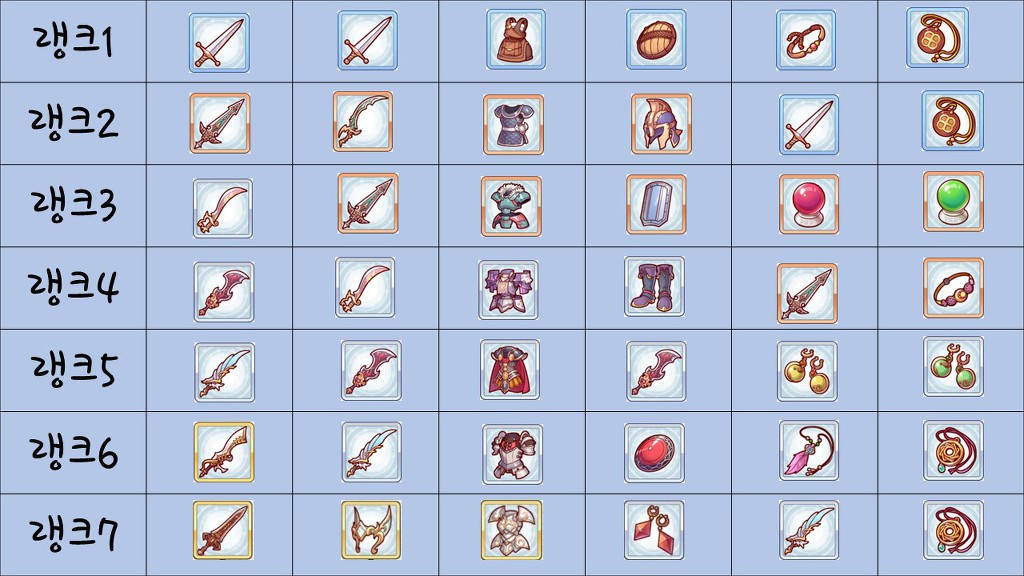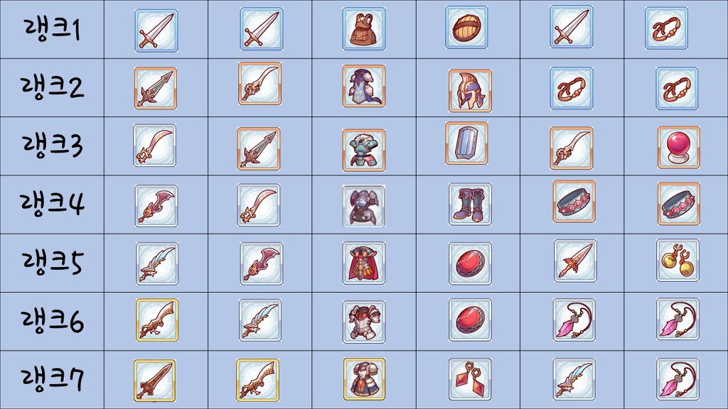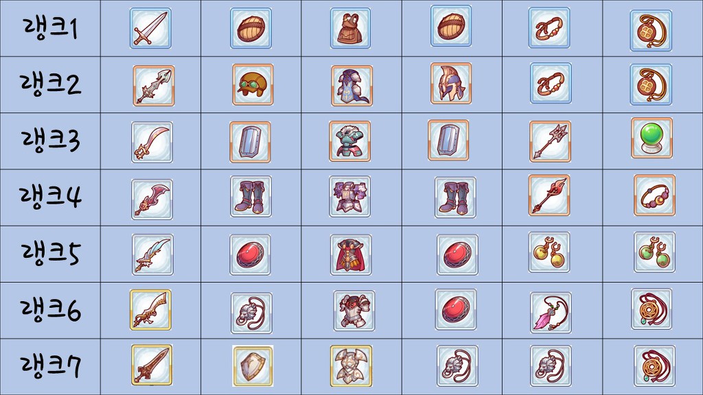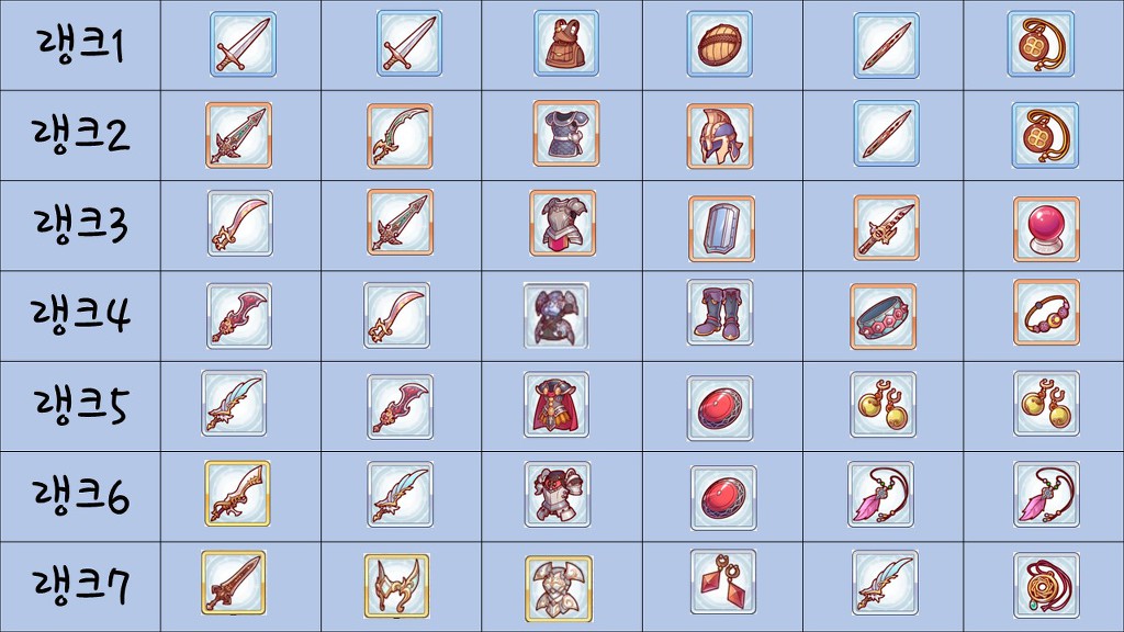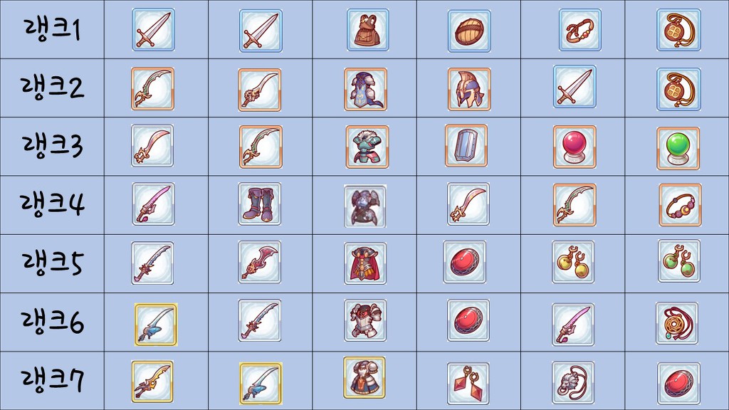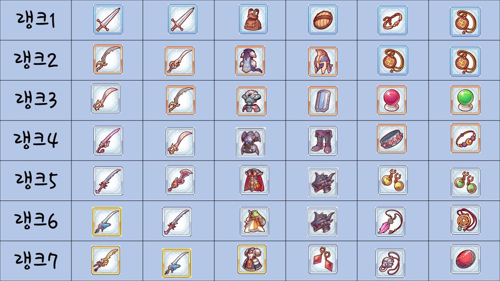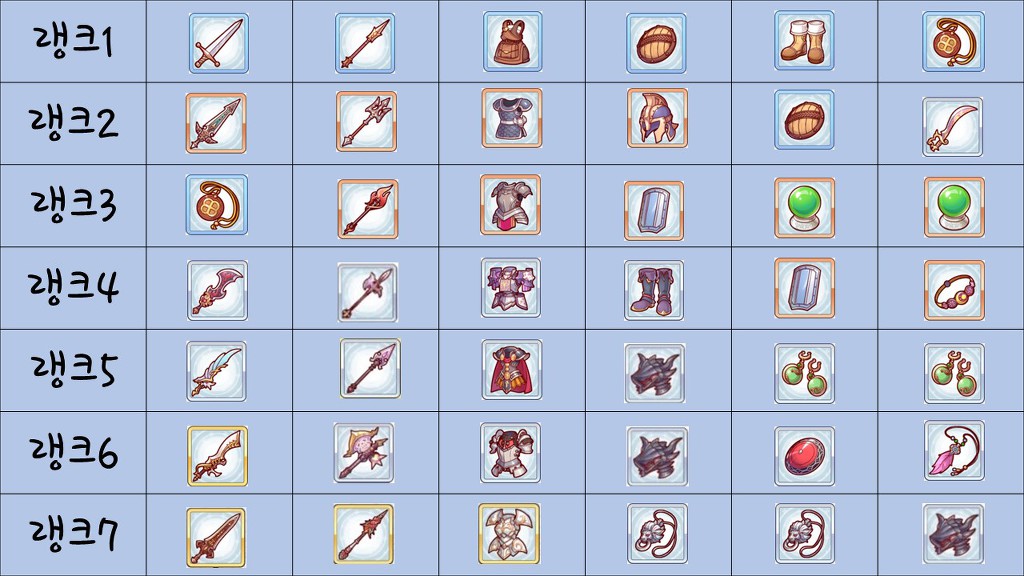 ※ 7랭크 장비중에는 현재 얻지 못하는 장비도 포함되어있습니다. ※