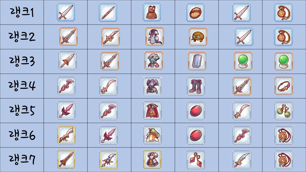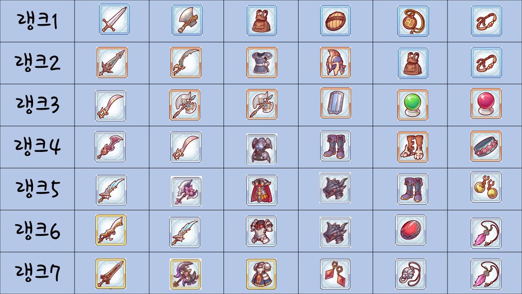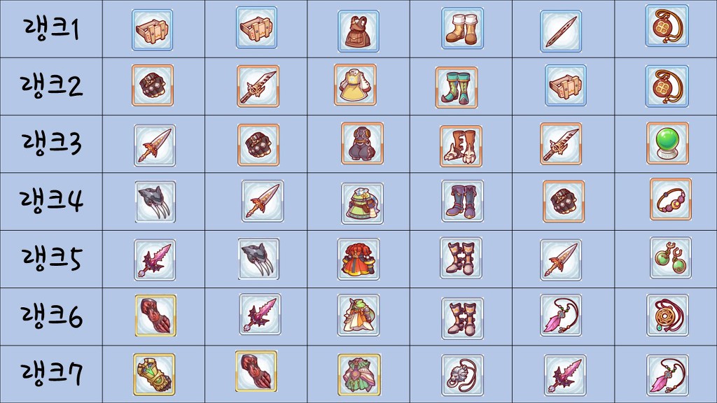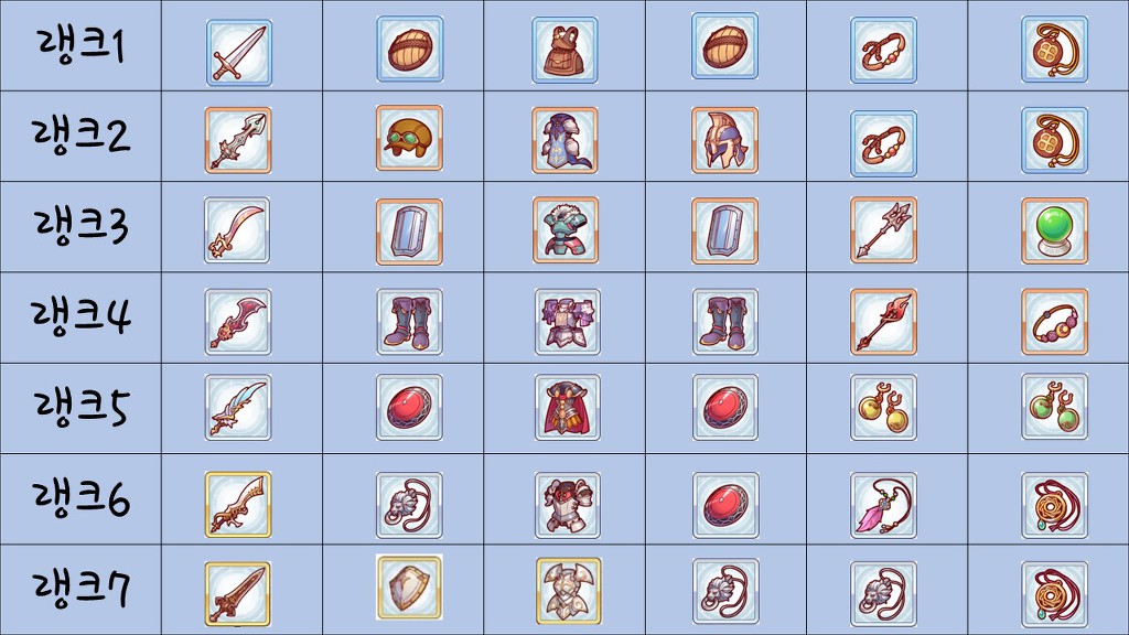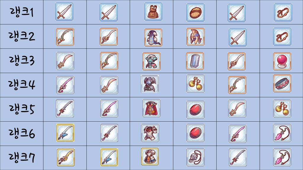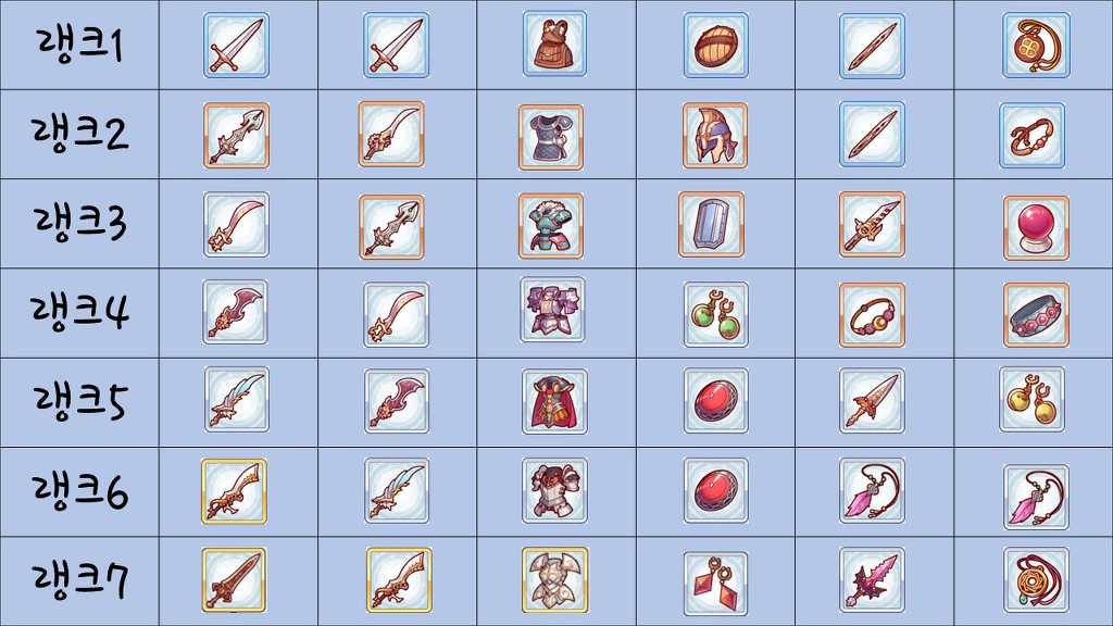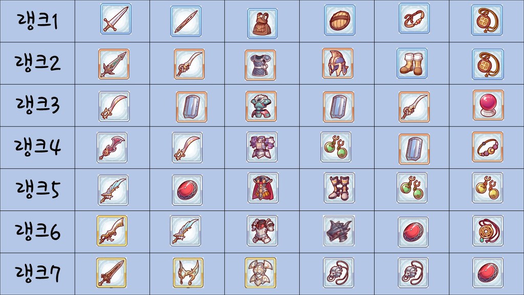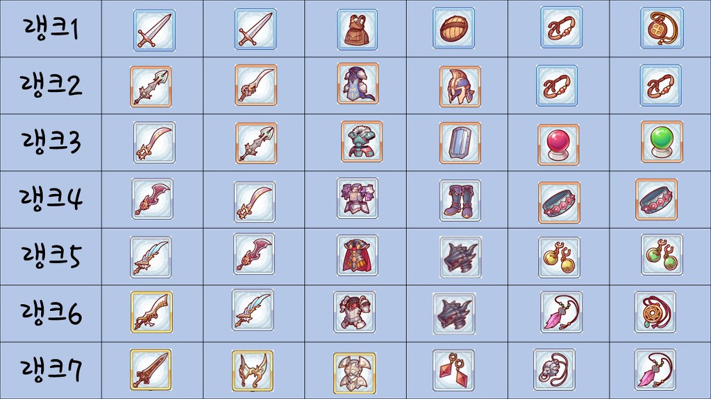 ※ 7랭크 장비중에는 현재 얻지 못하는 장비도 포함되어있습니다. ※