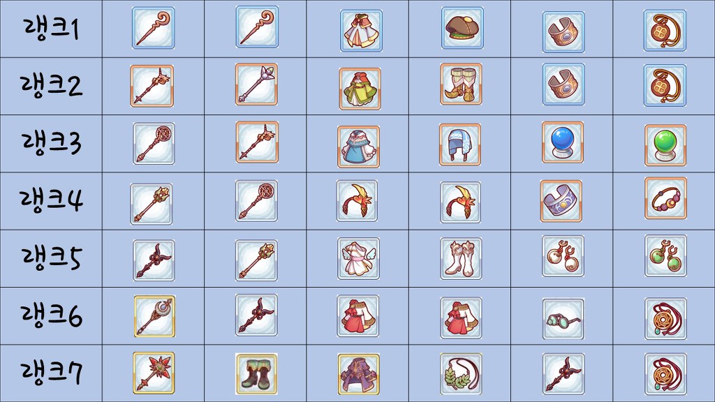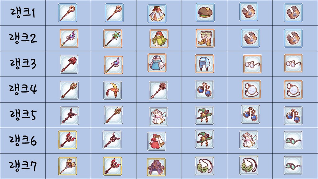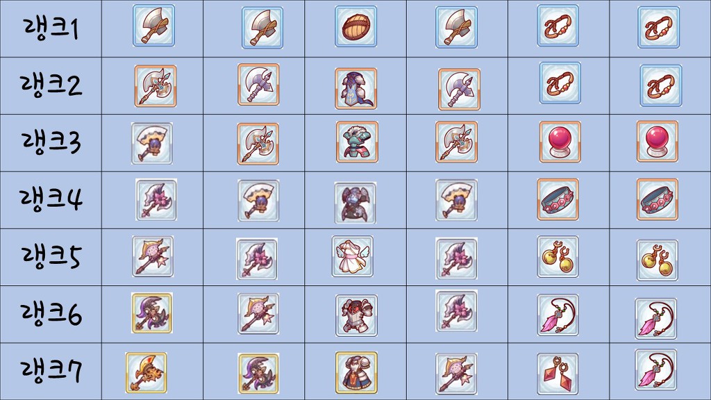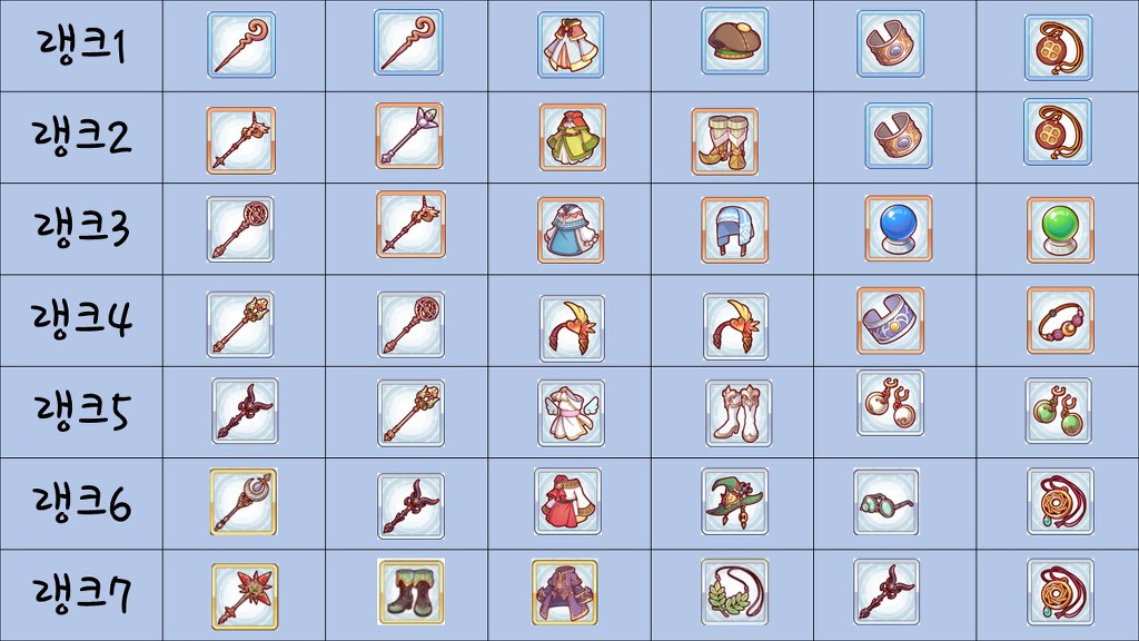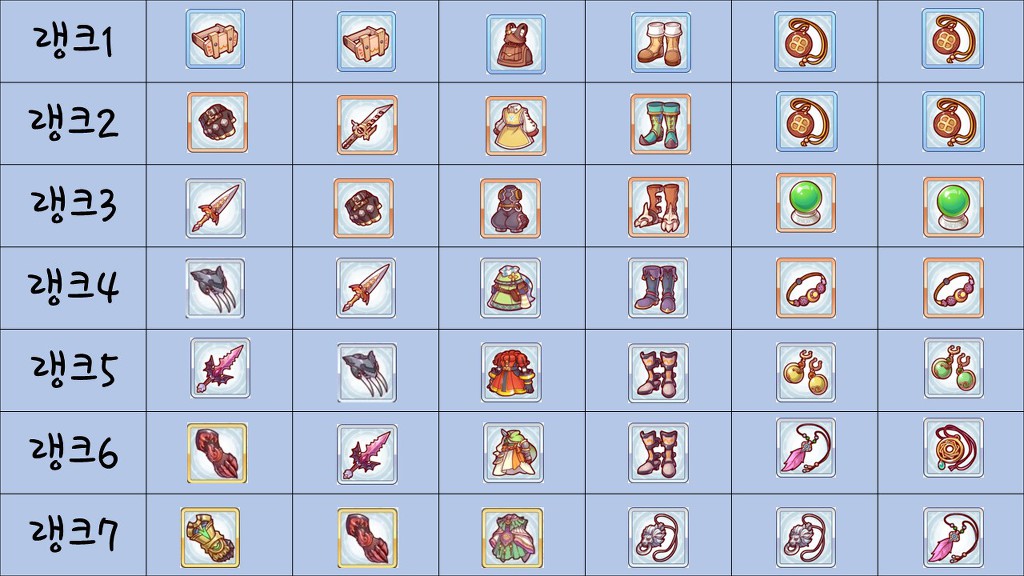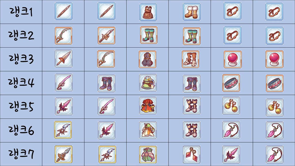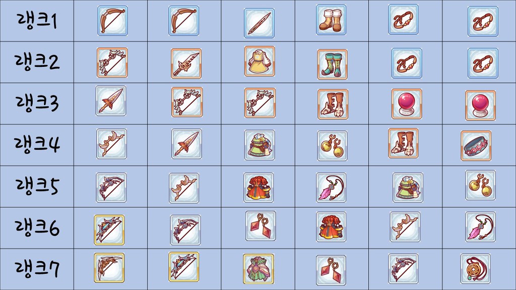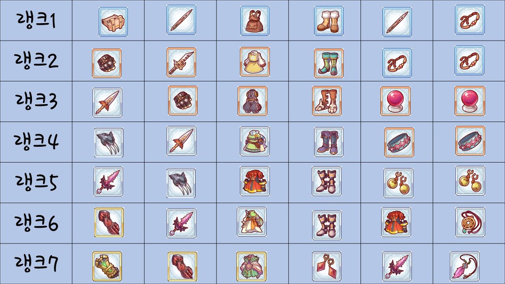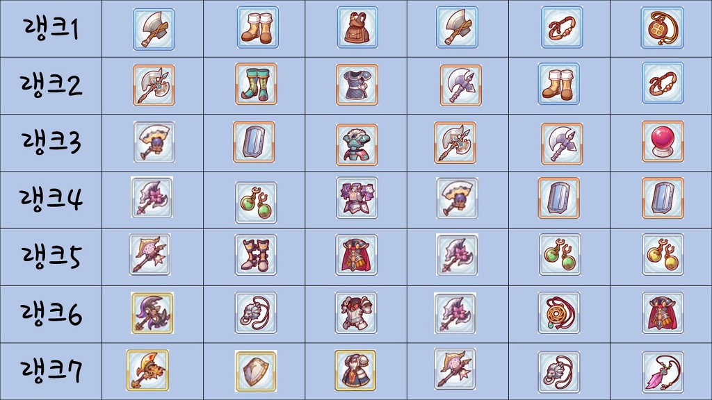 ※ 7랭크 장비중에는 현재 얻지 못하는 장비도 포함되어있습니다. ※