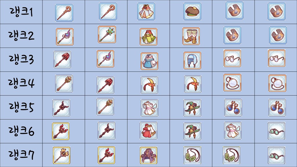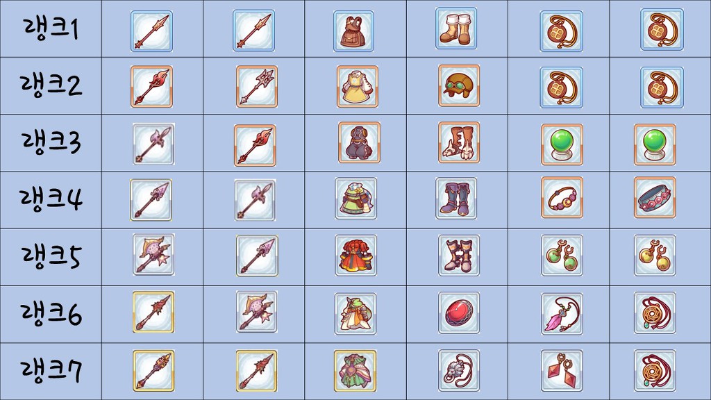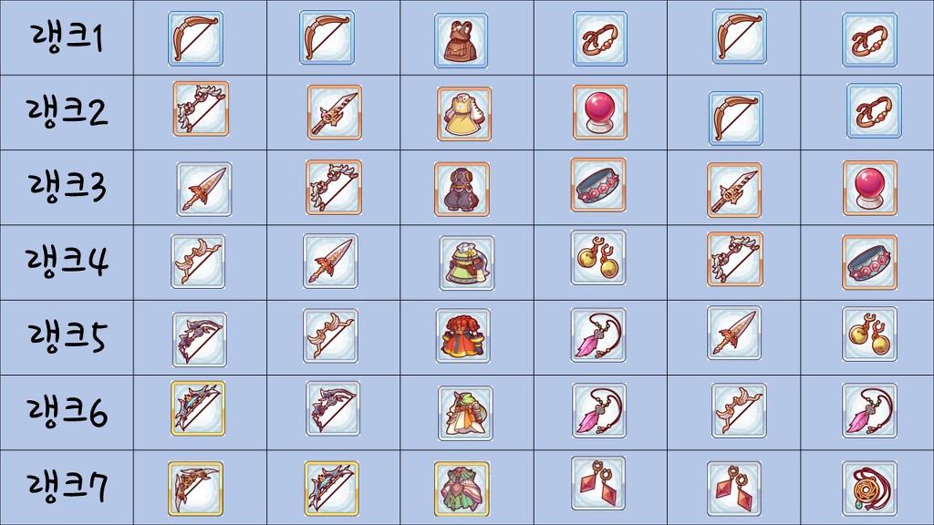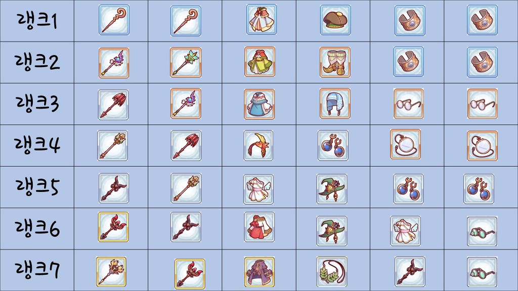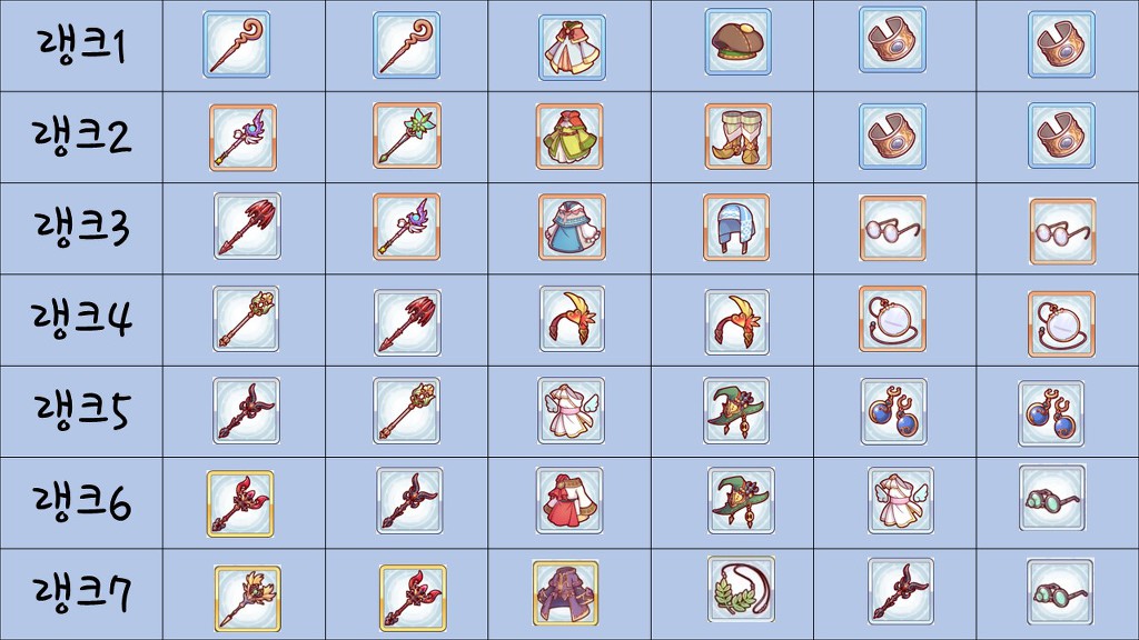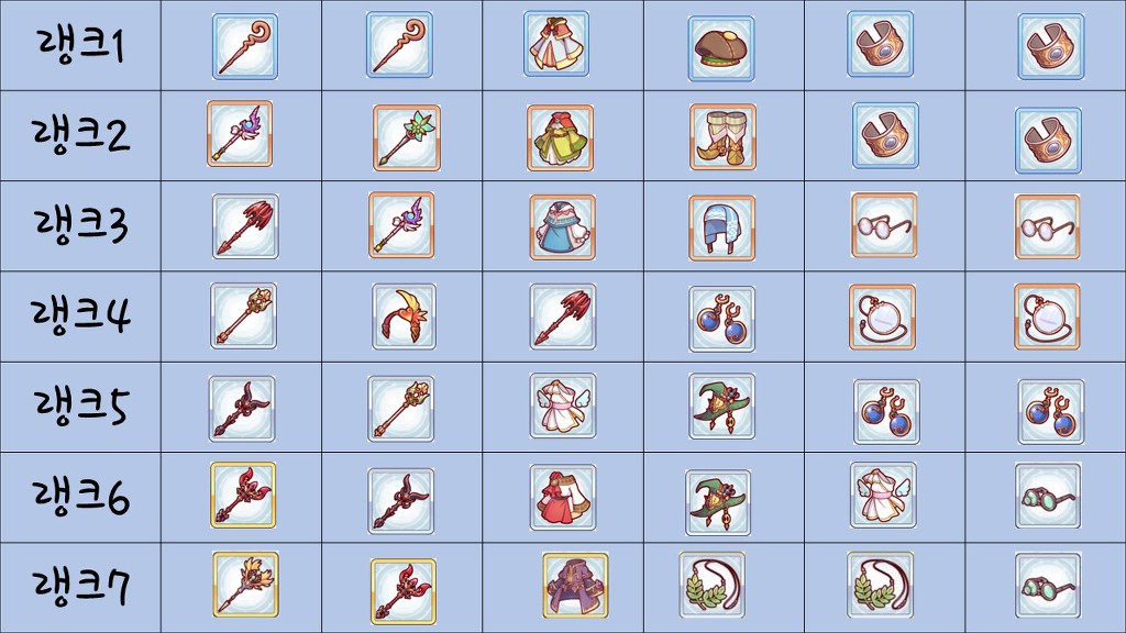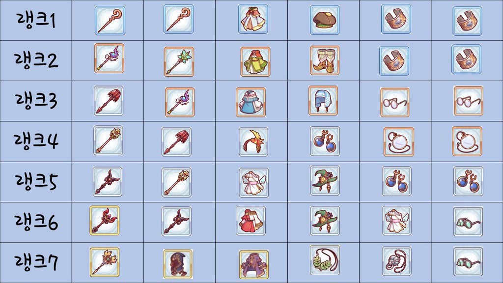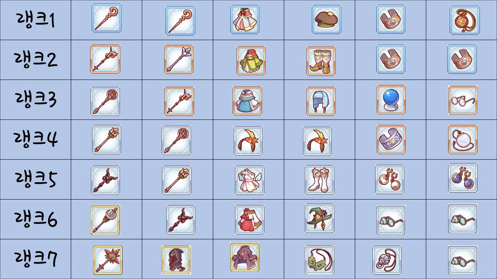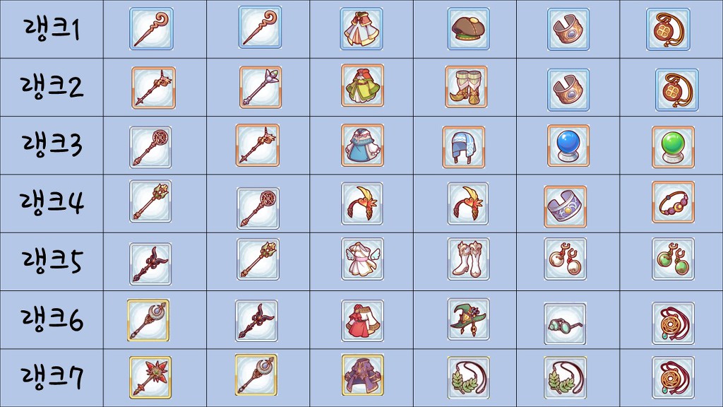 ※ 7랭크 장비중에는 현재 얻지 못하는 장비도 포함되어있습니다. ※