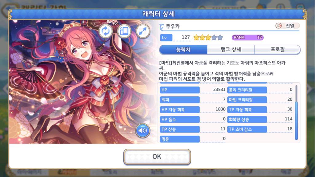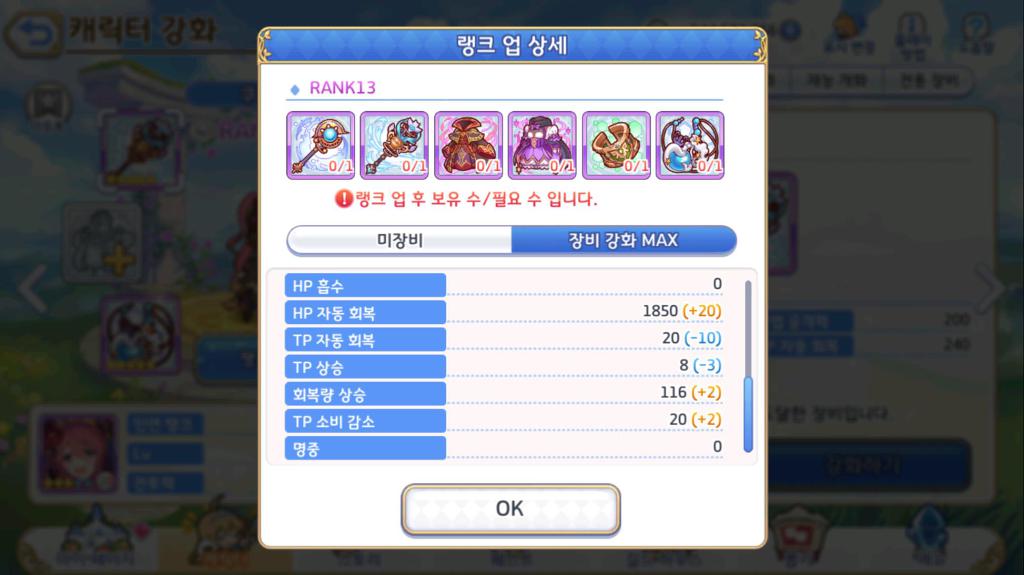 그리고 랭크업 버튼을 눌러 상세정보를 보시면 위에 그림과 같이 스탯을 확인할 수 있는데, 해당 수치를 확인해서