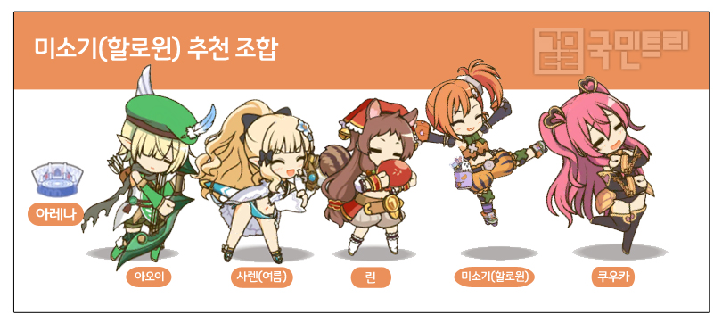 ‘미소기(할로윈)’은 아레나에서 패스트 캐릭터로 사용한다. 앞서 언급했듯 적이 줄어들면 역으로 유니온 버스트 딜량이 줄어들기 때문이다. 이에 ‘사렌(여름)’과 조합해 빠른 기선제압을 노린다. 단, 단일 딜은 부족하므로 이를 보완해줄 딜러를 함께 편성하자.