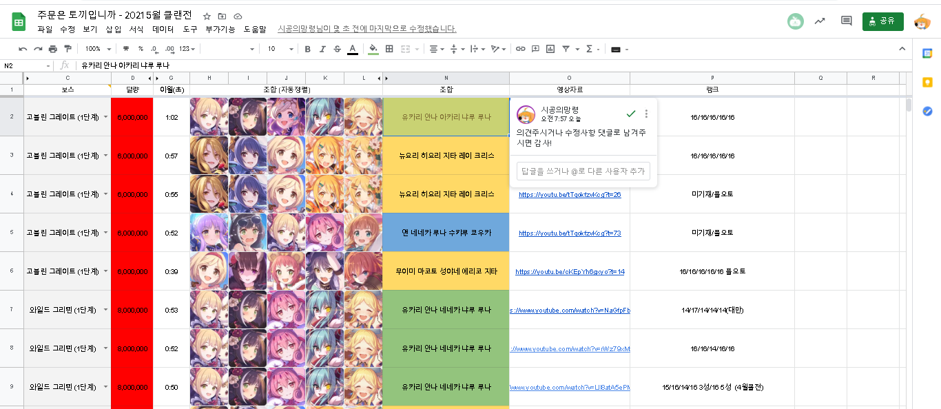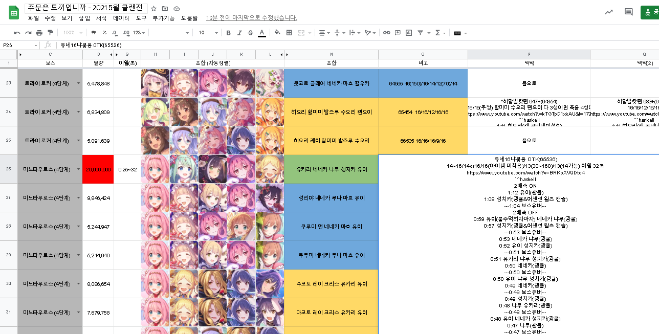 이렇게 올린 이유는 갈수록 빡세지는 클랜전에 서로 돕는 취지(?)도 있지만 앞으로 같이 시트제작에 도움을 주실분을 찾고있습니다!