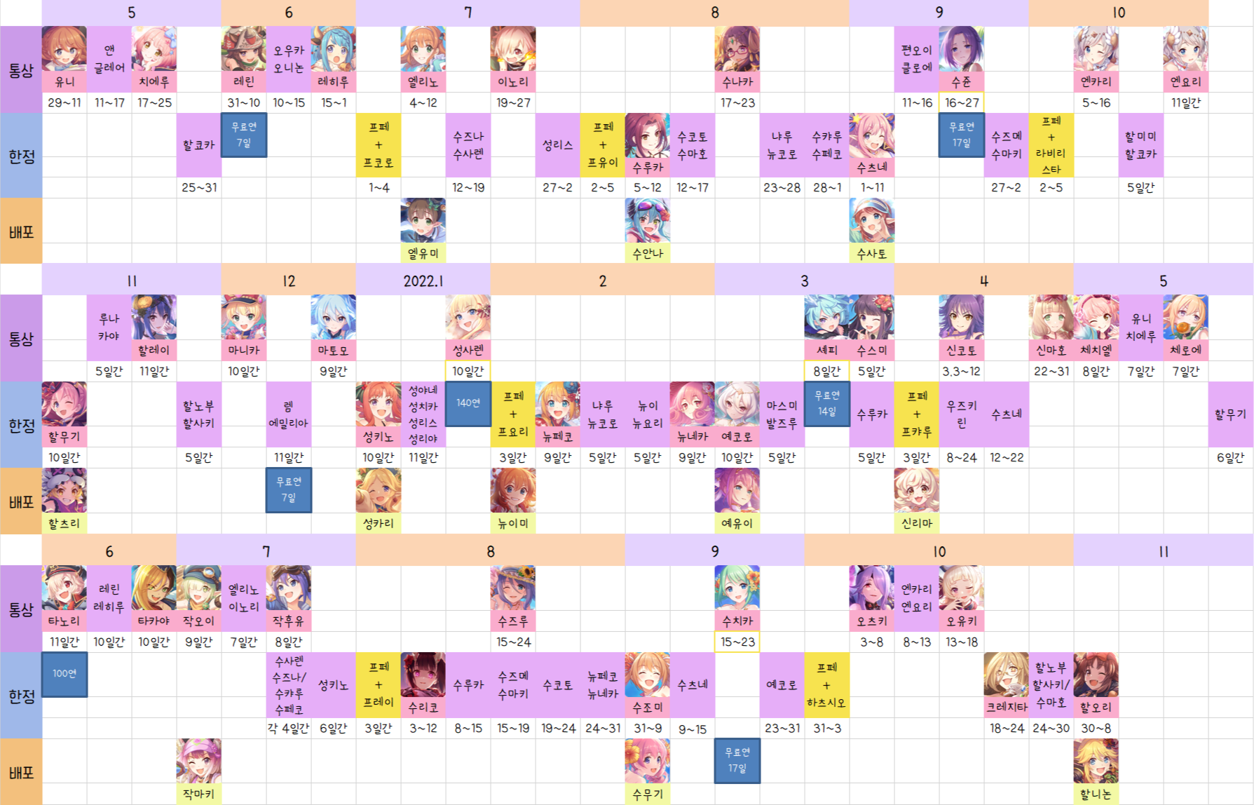 저의 주관적인 생각이 들어간 제 클랜원들에 맞춰져있는 추천뽑기이므로 가급적 자신의 상황에 맞게 융통성있는 가챠 부탁드립니다.