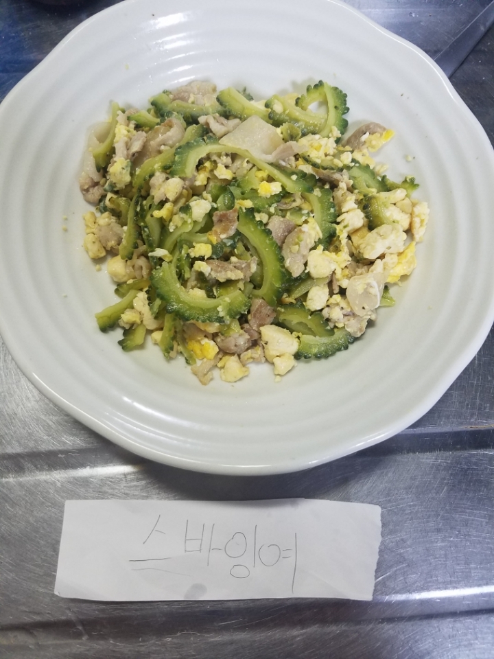 마지막으로 접시에 옮겨담아주면 카오리가 좋아하는 여주볶음 완성입니다!
