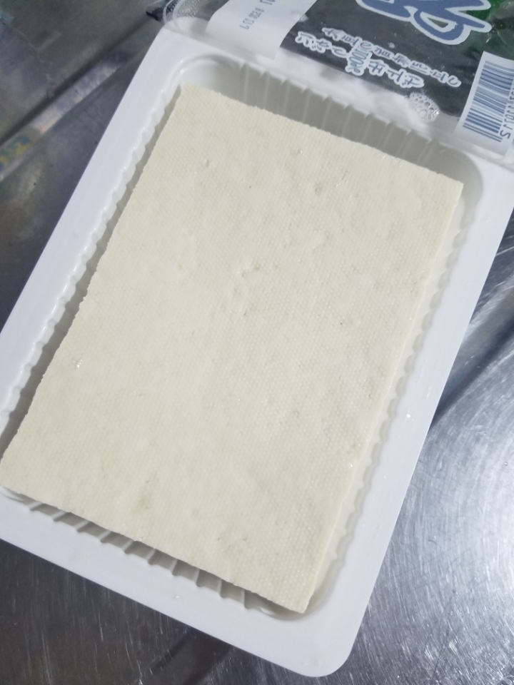 두부 포장을 뜯고 물을 따라내서...