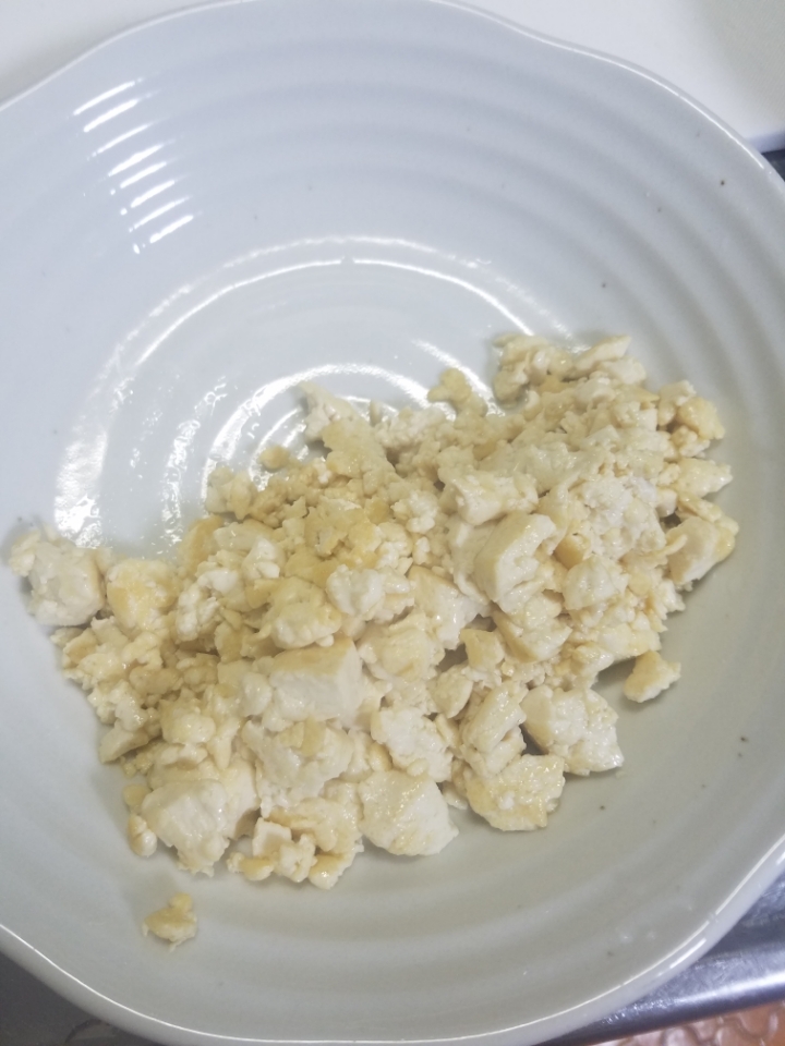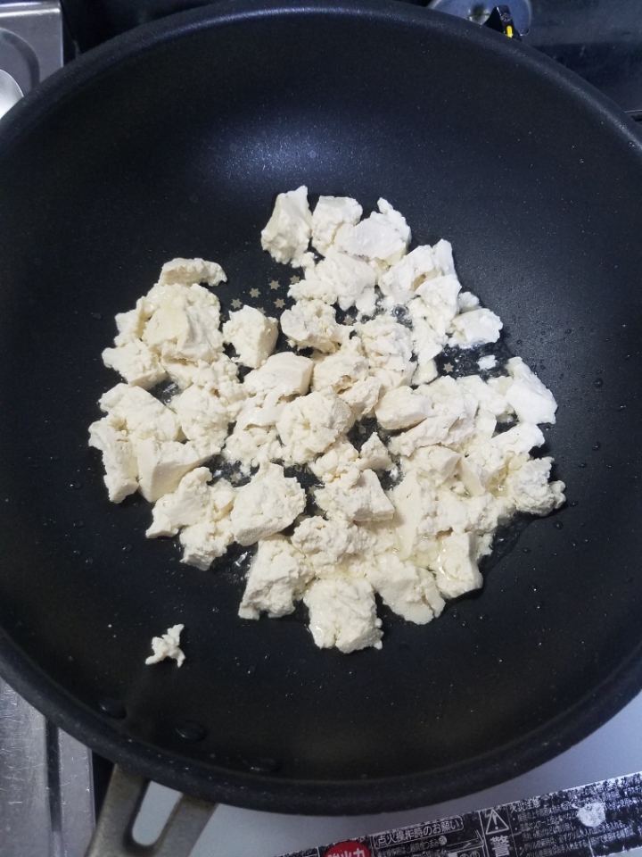 식용유를 두르고 두부에 어느정도 색이 날때까지 볶아줍니다(한큰술정도)