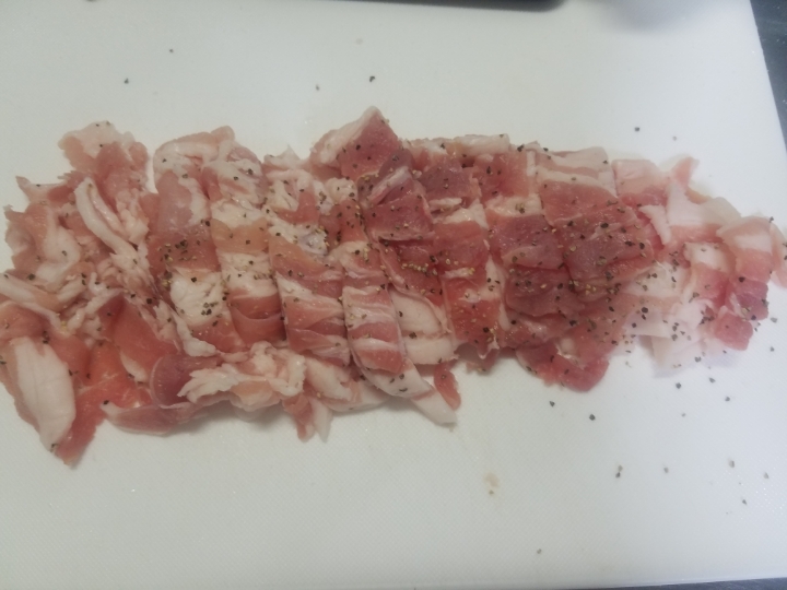 그래서 대신에 스팸처럼 지방이 많은 부위인 삼겹살을 써줄겁니다