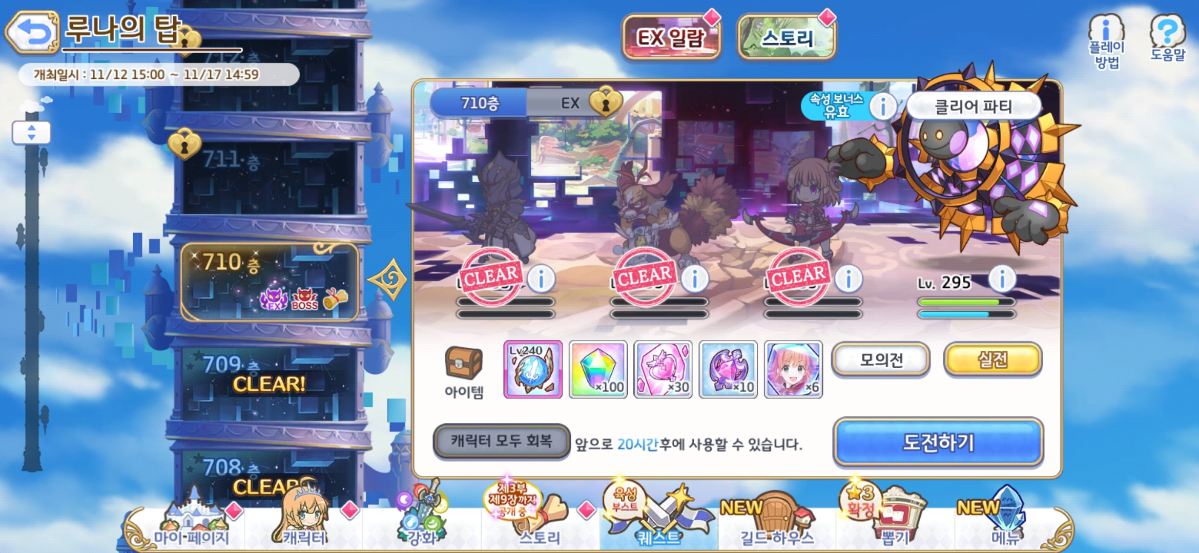 7일차에는 루나의탑 710층에 도달하였고,
