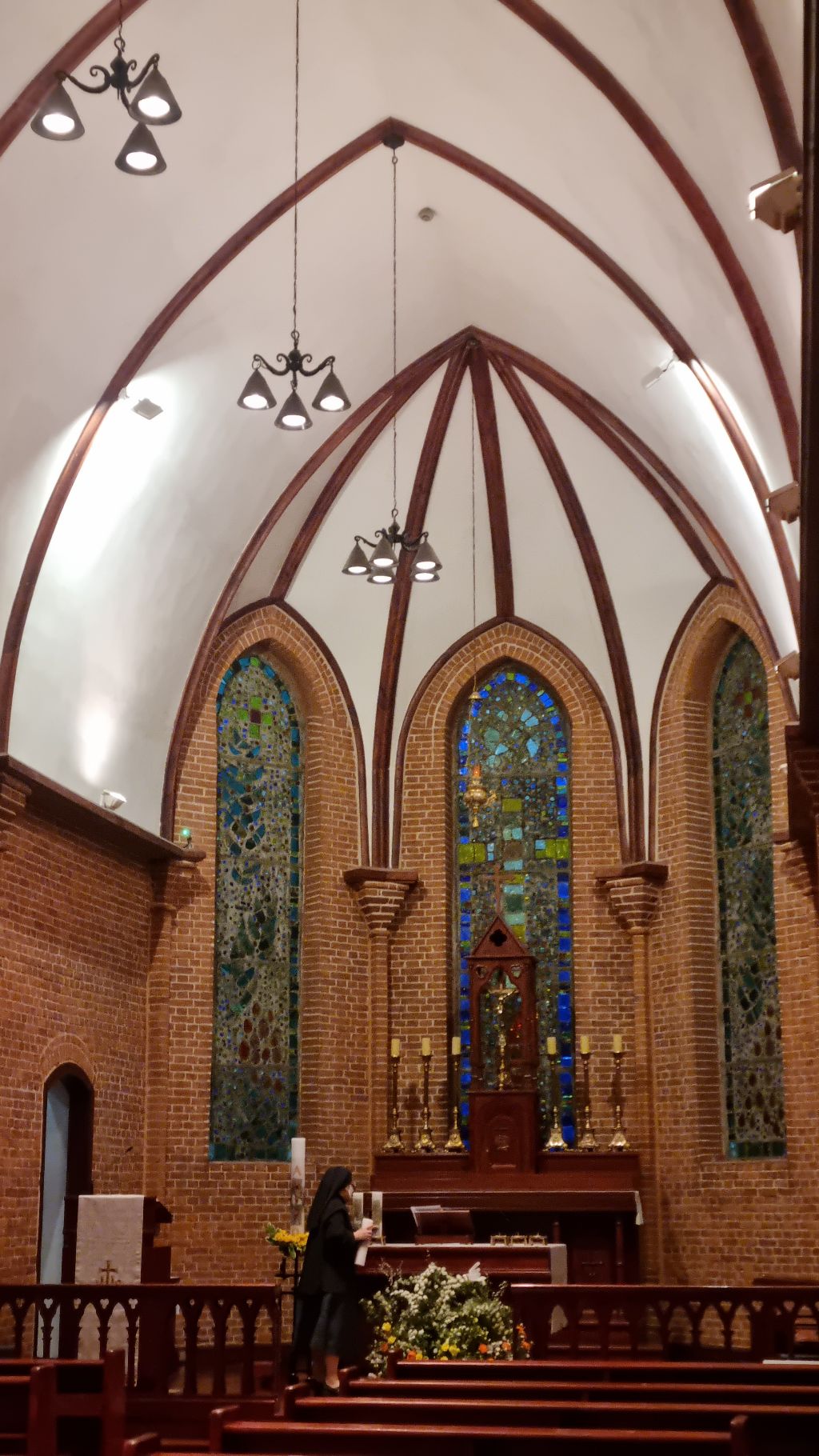 예배 마치고 들어가면 내부가 해 질 녘이라 예쁠 거라고 말씀해 주셨어요