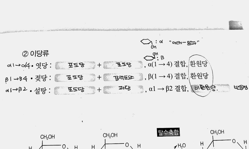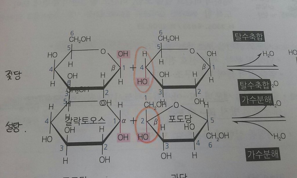 글리코시드 결합 질문입니다 엿당의 알파 1에서 4 결합이라는게 알파1에서 알파4라는 뜻인거죠? 근데 젖당과 설탕의 경우 2번째사진에서 (동그라미부분) 왜 베타4가아닌 알파4로 가는건가요 ? 또 과당의 경우에도 아래로 알콜기니까 알파2 아닌가요 ㅠ