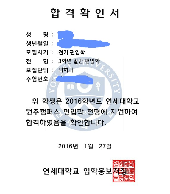 연세대 원주 의과대학 일반편입을 준비하는 수험생분들에게 조금이나마 도움을 드리고자 합격수기를 올립니다.