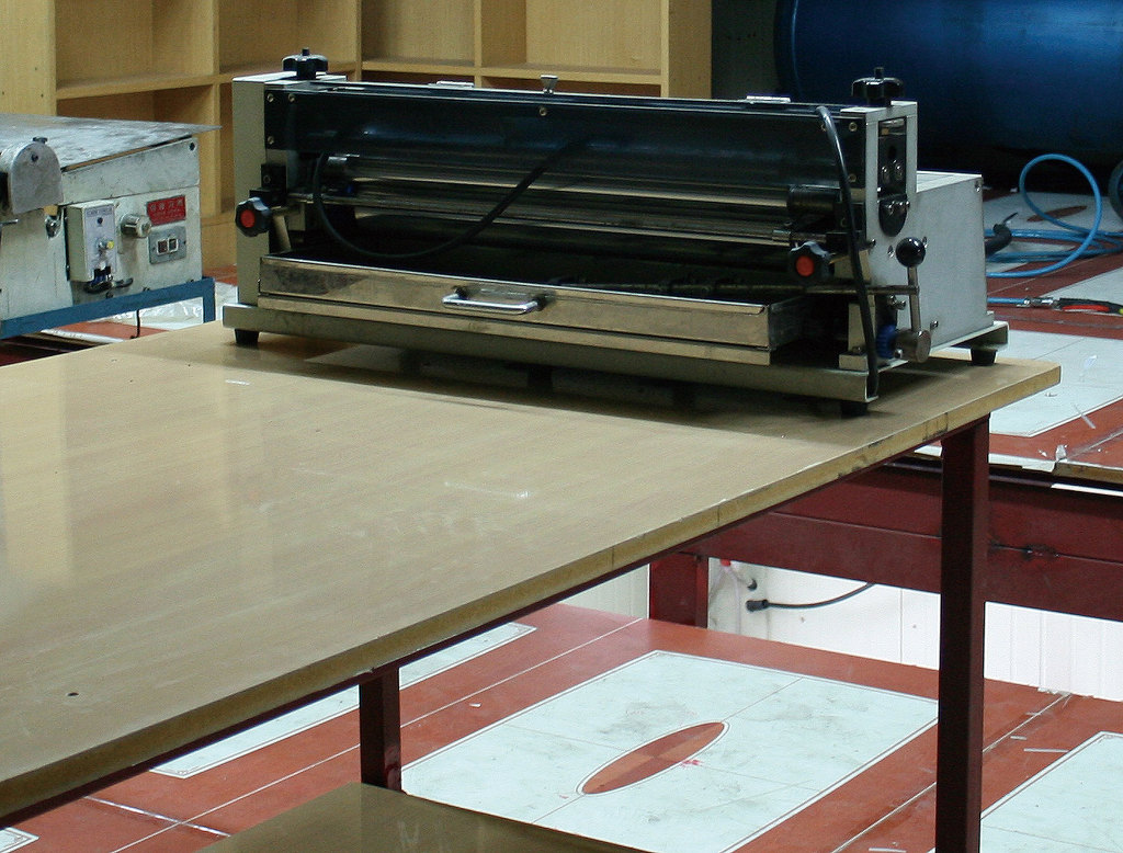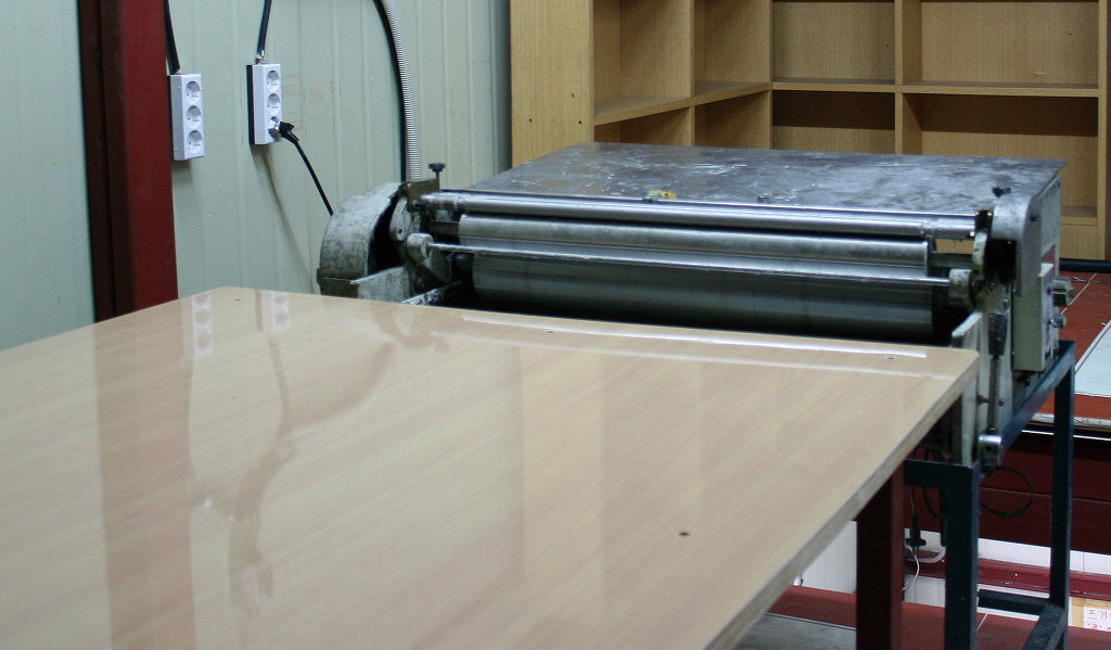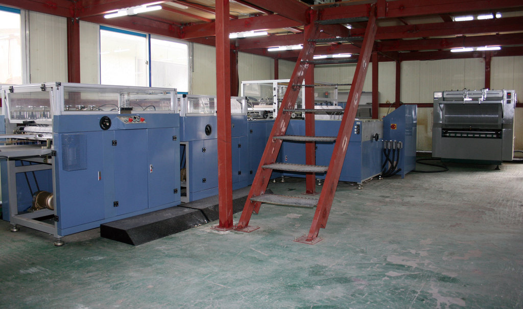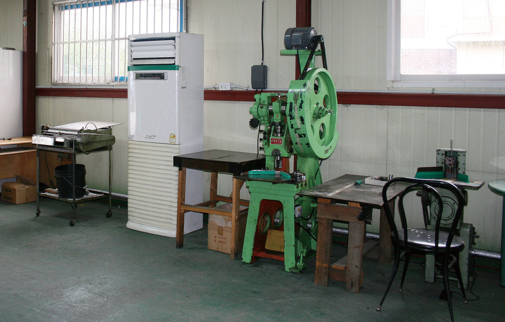우리나라가 OECD국가로서 위상을 자리잡으며 국민의 삶의 질이 윤택하여졌습니다. 물론 IMF 이후 장기적인 불황과 미약한 회복을 거듭하며 저상장을 하고있지만, 국민들의 상품을 보는 시각이 선진국형으로 바뀌어가고 있습니다. 이렇한 국민적 수준 상승에 부합하는 최상품을 만드기 위한 우리의 디자인 경쟁력은 이미 선진 대열에서 경쟁하고 있으며 특히, 명품을 선호하는 경향이 유별나게 강한 국민성을 지니고 있음이 보여지고 있읍니다. 따라서 인쇄, 출판업 또한 특별하고 세련된 디자이과 컨셉이 요구되고 있습니다. 싼타마을의 주 상품에 다이어리와 카렌다 제품이 있습니다. 불과 10 여년 전만 하더라도 다이어리 제작의 원가 중에서 표지가 차지하는 비중이 크지 않았습니다. 그러나 점차 국내의 값싼 표지보다 약간 고가이면서 품질이 좋은 중국산이 국내 다이어리 표지 시장을 잠식하게 되었습니다. 따라서 싼타마을 또한 중국에 현지 직원을 두고 중국 공장에서 OEM 생산을 하여 납품하였습니다. 또한, 시간이 지나면서 북방(심양, 단둥, 이유 등)의 저임급과 저급 기술력을 가진 업체들의 제품이 외면되고 좀 비싸더라도 남방(광저우, 뚱관)의 고급 기술인력이 모여 있는 곳의 제품을 찾게되었습니다. 중국 또한 임금의 급격한 상승과 각종 사회적 간접비용이 증가하는 중진국형으로 바뀌고 뮬류비용의 상승으로 "세계의 공장"이라는 수식어가 무색하여지고 있습니다. 싼타마을은 상기와 같은 트랜드와 국제적인 흐름을 간파하고, 4년 전 부터 고급 표지의 개발에 박차를 가하였습니다. 그 결과 4종의 표제 제자 관련 특허를 출원하였으며 중국의 저가와 품질을 앞서는 기술력을 보유하게 되었습니다. 싼타마을의 장점은 제작 시스템에 자동화를 도입하였습니다. 이러한 자동화 설비로 인하여 레쟈로 합지를 감싸서 라운드가 형성되는 표지를 만들기 위해 지금까지는 30명이 투입되었다면 싼타마을에서는 1명이 그와 같은 작업을 보다 정교하게 만들게 되었습니다. 또한, 공장에서 자체 개발실을 운영하고 있어 다양한 요구에 빠르게 대응하고 소량 다품종 생산이라는 커다란 틀을 완성하게 되었습니다. 아래 사진은 싼타마을에서 운영중인 일산 장항동 공장의 설비들 입니다. V-Cutter(V홈)기계 : 두터운 합지의 꺽이선을 절곡하지 않고 V홈을 파는 기계입니다. 바인더, 박스 등 고품질의 상품을 제작하기 위하여 반드시 필요한 장비 입니다. 싼타마을에서 보유하고 있는 아래의 장비는 하드롱 전지에 10개의 홈을 동시에 깍을 수 있는 장비입니다. 라운드 레쟈표지 베리어블 표지 제작기계 : 얇거나 혹은 두터운 합지 등에 레쟈를 감싸는 형태의 표지를 제작하는 기계입니다. 종이 또는 데코페이퍼 종류의 합지 표지는 자동화가 잘 이루어져 있으나, 레쟈는 재질의 성질이 매우 다양하여 일관된 Sealing System을 구축하기가 힘들기 때문에 대부분 수작업에 의존하여 왔습니다. 아래의 사진은 싼타마을에서 보유하고 있는 장비로써 국내에 도입된 5대 중 2대를 보유하고 있습니다. 구형 장비로 싼타마을에서 개발하여 도입한 장비보다는 속도가 늦지만, 금형 비용이 현격하게 적게 들어가는 시스템으로 소량 다품종에 경쟁력을 갖추고 있습니다. 건조대 : 표지 및 합지에 본딩하여 건조하는 장비입니다. 총 20여대의 건조대를 구비하고 있습니다. 고주파 형금박기 : 금박 또는 불박(무박)을 하는 장비로써 히팅과 함께 고주파를 첨가하여 원단에 균질한 열을 전달할 수 있는 박기계입니다. 특히, 1단~3단으로 다단의 형 작업을 할 수 있으므로 레쟈에 박인쇄를 하는 것에 유용합니다. 톰슨기계 : 평판 반자동 톰슨기계입니다. 불규칙한 성질을 갖고 있는 레쟈 등의 표지 원단을 목형으로 형을 따내는 작업을 하는 기계입니다. 레쟈 표지 제작에 있어서 반드시 필요한 장비입니다. 표지 제작 프레스 : 합지 등에 레쟈 및 특수 원단을 사용하여 책 표지를 제작하는 프레스입니다. 싼타마을에서 수년간에 걸쳐 개발한 시스템의 핵심 장비 중 한가지입니다. 원단의 물성과 합지, 스펀지 등 각종 부속물을 장착한 표지 제작에 자동화 구현에 성공한 케이스입니다. 현재, 국내에서 소량 다품종의 고품격 표지를 만들 수 있는 곳은 싼타마을이 유일합니다. 보유중인 장비는 2대 입니다. 금형실 : 표지 제작에 필요한 금형입니다. 현재 10여 가지 규격의 금형을 보유하고 있습니다. 금형 비용이 상당하기 때문에 품모을 늘리는 것에 한계가 있습니다. 자동 싸바리기계 : 카렌다 삼각대, 바인더, 박스 등을 제작할 때 합지를 넣고 표지를 감싸는 기계입니다. 운용 중인 아래의 장비는 광폭(950mm)으로 대형 바인더 및 박스 등 규격이 큰 제품에 강점이 있습니다. 수동 풀바리기 : 상기위 자동싸발로 할 수 없는 소량을 처리하는 장비입니다. 싼타마을에서는 아래와 같은 총 3대의 장비를 보유하고 있습니다. 롤 압축기 : 표지 작업 후 마지막 공정으로 압착을 하여 제품을 완성하는 장비입니다. 사용 용도는 인쇄 후가공 과정에서 광법위하게 사용되고 있습니다. 따라서 기계에 바퀴를 달아 이동하여 사용합니다. 자동 리벳기계 : 바인더, 다이어리 등