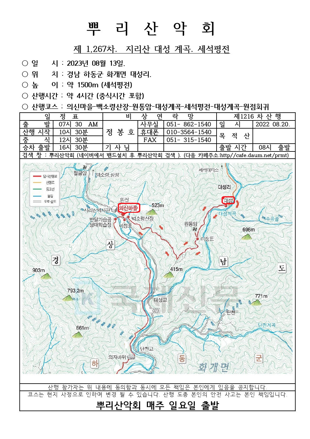 제1267차 부산뿌리산악회 산행 가이드--지리산 대성계곡.2023.08.13. 작성자은계|작성시간23.08.10|조회수81 목록 댓글 0 글자크기 작게가 글자크기 크게가 다음검색 현재 게시글 추가 기능 열기 북마크 공유하기 신고 센터로 신고 댓글 댓글 0 댓글쓰기 답글쓰기 댓글 리스트