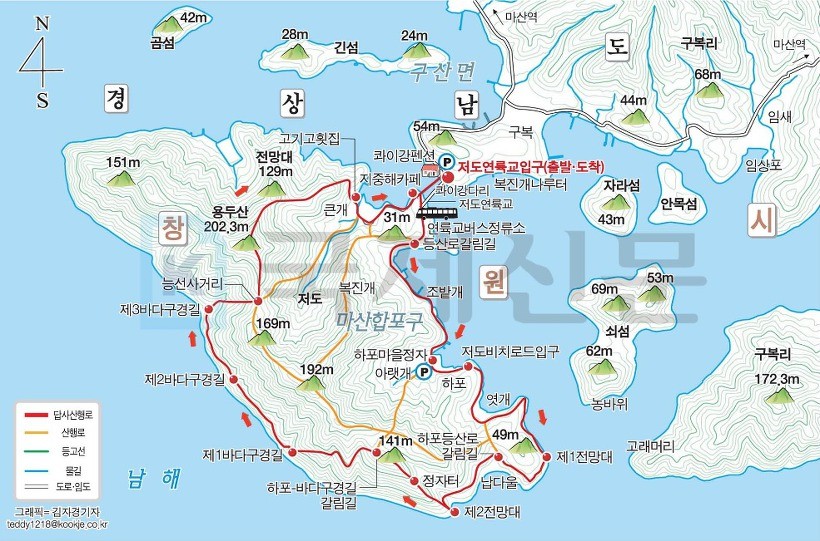 2.산행 들머리:경남 창원시 마산합포구 구산면 저도 하포마을 정자 앞