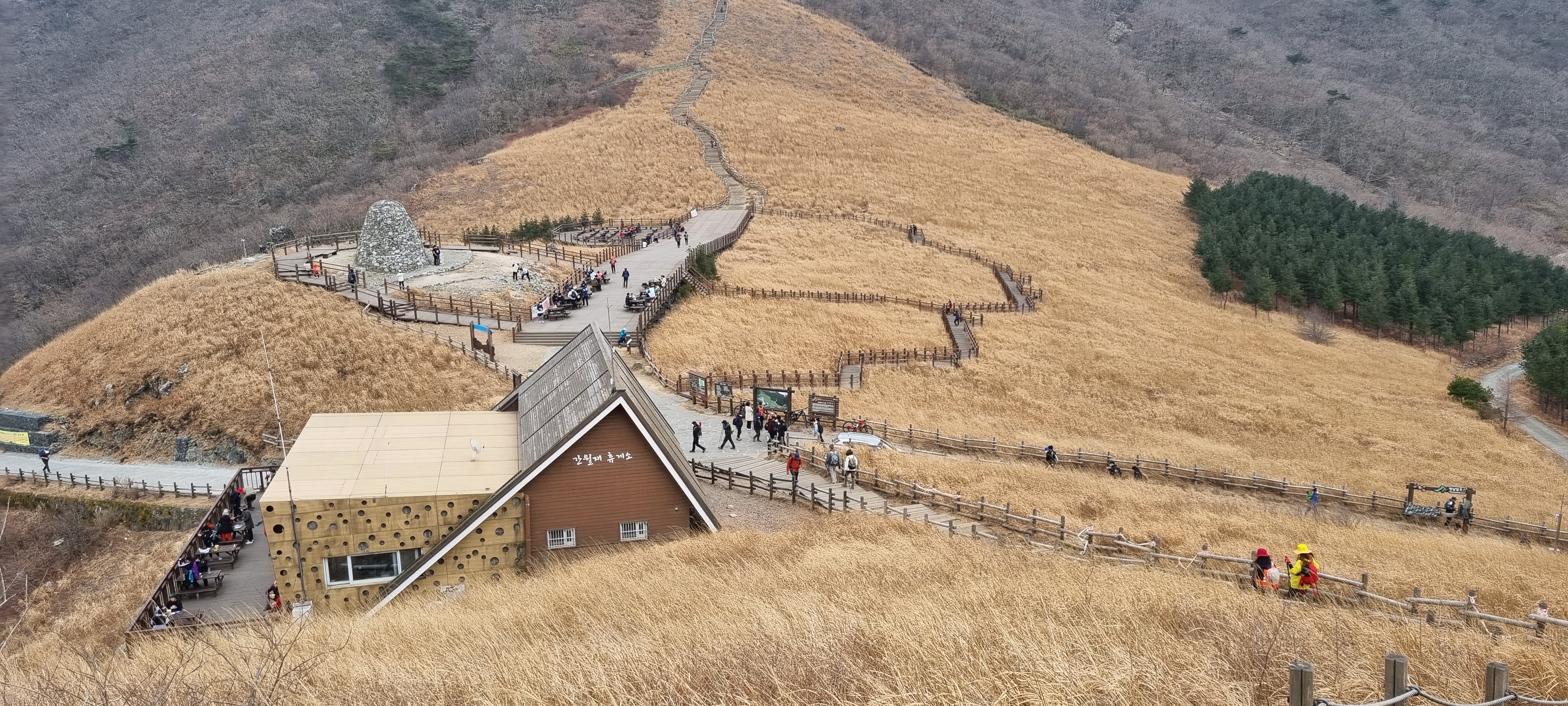 산행코스:A조 ((임도따라 걷는길)): 하얀펜션 ~신불휴양림상단 ~죽림굴 ~임도 ~간월재 ~간월산~간월재 ~복합웰컴센터 (약9키로 산행시간 5시간30분 식사시간 포함)초보