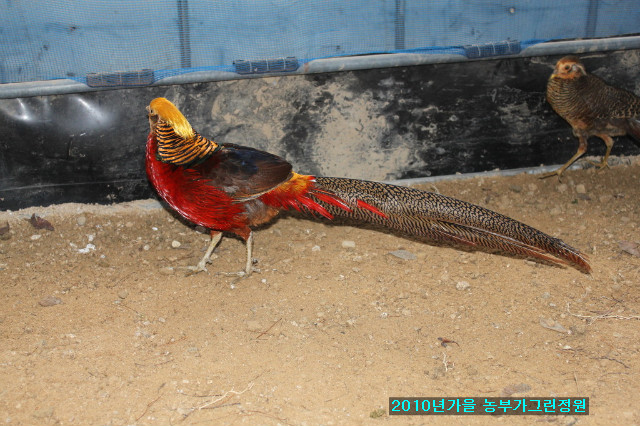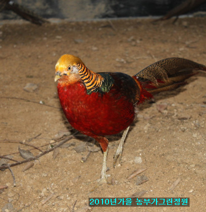 꿩과의 새. 꿩과 비슷한데 수컷은 광택 있는 황금색 우관(羽冠)과 뒤 목에는 누런 갈색, 어두운 녹색의 장식깃이 있어 매