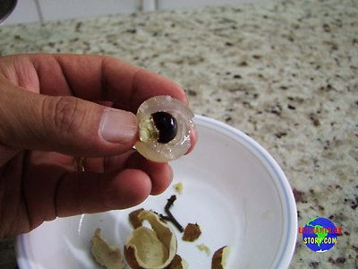 세번째 과일인데요. 이 과일은 앞의 두 과일에 비해 색채가 떨어집니다. 크기도 좀 더 작고 말이죠. 앞의 두 과일은 좀 더 타원형인데 비해 이 과일은 원형에 가깝습니다. 이 과일의 이름은 롱안(龍眼) Longan 입니다. 포르투갈어로는 그냥 번역을 해서 용의 눈알 Olho de dragao 이라고 부릅니다. 스페인어로는 아마도 Ojo de dragon 이라고 하지 않을까 싶습니다. 역시 말레이 제도쪽이 원산지라고 하네요.