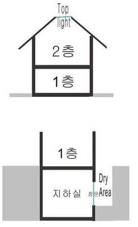 지하실 벽에 창문을 뚤어 그 구덩이를 통해 환기와 빛을 받게 하는