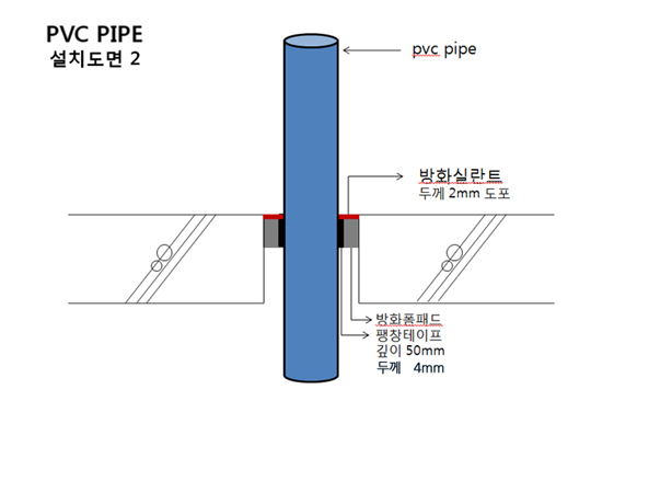 2). pvc파이프는 화염에 녹아내리고 팽창테이프가 열에 의해 팽창하면서 슬리브구명을 차단하는 원리임.