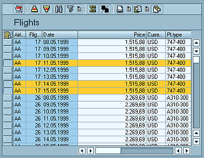 The user selects the rows through pushbuttons at the left border of the grid control. |