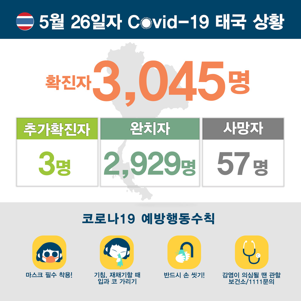 금일(26일) 태국 보건부의 Covid-19관련 발표자료 :