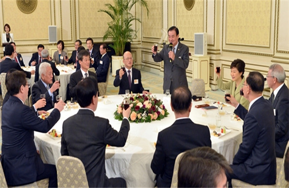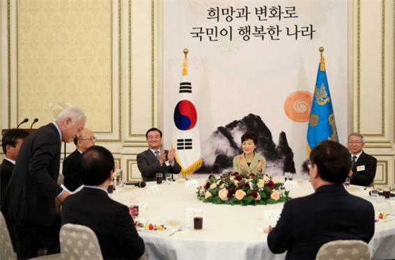 지난 2014년 1월 초, 청와대에서 있었던 신년인사회 때 헤드테이블의 좌석배치는 다음과 같습니다.