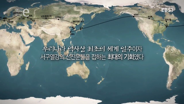 - 제물포를 출발해 태평양, 미대륙, 대서양, 유럽대륙을 거쳐 모스코바까지의 대장정 지도(EBS자료)