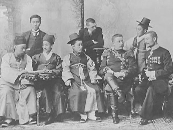 1917년 소비에트 정권이 수립되기 전까지 황제를 지냈던 러시아 로마노프 제국의 마지막 황제, 니콜라이 2세. 책에는 대관식을 축하하러 온 각국 외교 사절단의 사진도 실려 있다. 그런데 사절단의 사진 중에 뜻밖의 사진 한 장을 찾았다. 러시아 고관과 함께 있는 낯익은 모습의 이들.... 갓을 쓰고 도포 차림을 한 전형적인 조선 선비의 모습. 이들은 바로 조선왕조의 외교 사절단이었다. 사상 최초의 러시아 특사, 민영환(閔泳煥).